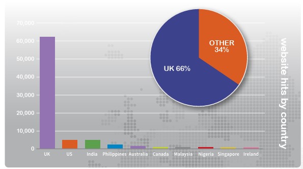 We have 188 countries accessing our website, with the top 10 below.